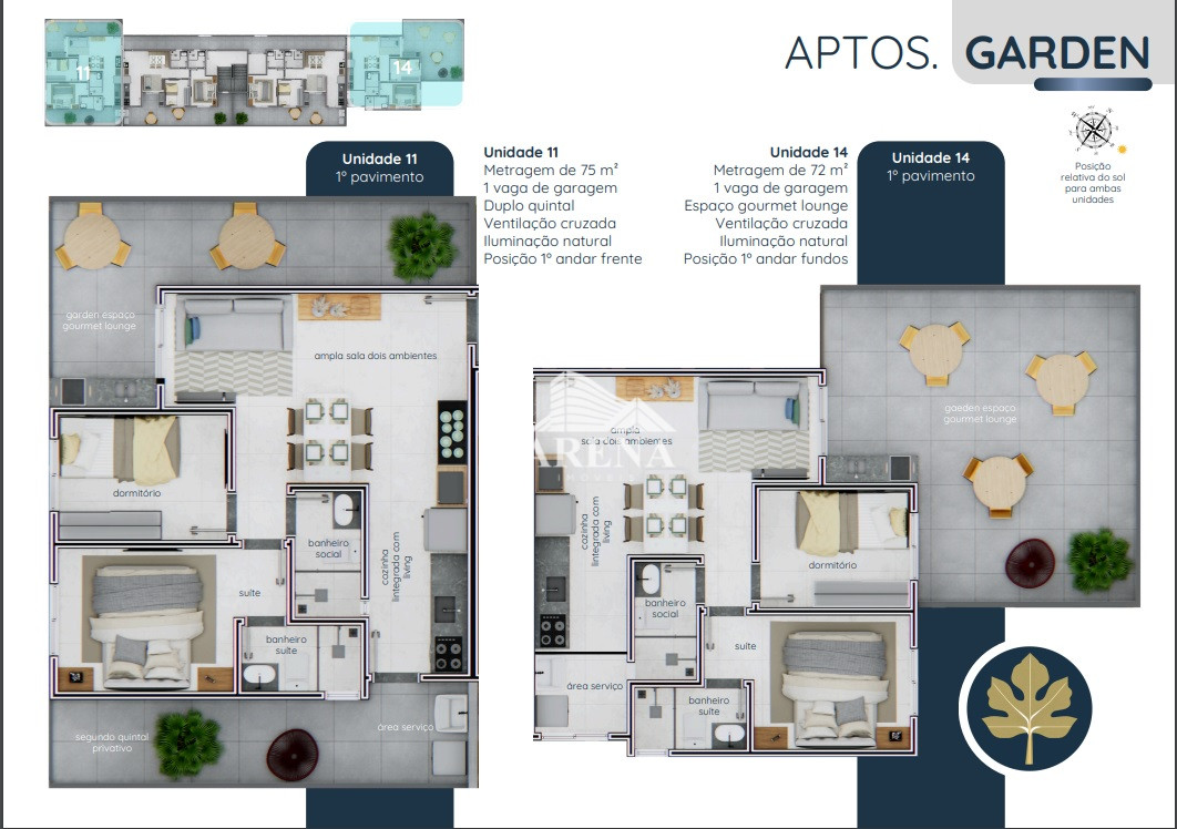 Apto garden de baixo condomínio com 2 dormitórios, sendo 1 suíte, com varanda gourmet, 1 vaga de garagem. Terreno de 440 m² (Mais alto), apto de72 a 75 m² , 5 andares Com elevador até as coberturas Pré disposição para sua instalação de ar condicionado Iluminação e ventilação natural em todos os cômodos . Entregue com porcelanato em todos os cômodos. Excelente localização próximo aos bares e restaurantes da região da Rua das Figueiras. A 7 minutos do Grand Plaza Shopping e 6 minutos do Parque Pref. Celso Daniel. CONDIÇÕES FACILITADAS PELA CONSTRUTORA 30% Entrada no período de obra, com parcelamento direto com a construtora até a entrega das chaves. Aceitamos veículos como parte de pagamento. Condições de parcelamento flexíveis, formalize sua proposta! Previsão de entrega: Janeiro de 2027, UNIDADES 11 e 14 Imagens ilustrativas do empreendimento.